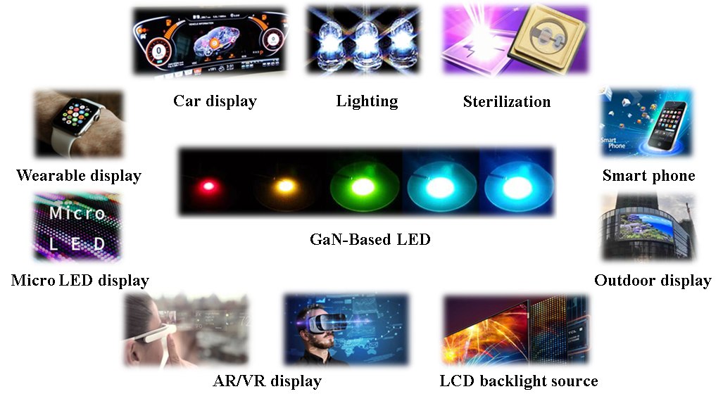 Epitaxial growth of nitride films with large mismatch and strong polarization. Fabrication of high-efficiency visible and ultraviolet LEDs. Develop approaches to control the polarization electric field in nitride quantum wells grown on the c-axis so as to realize weak polarization electric field LEDs with high efficiency and wide modulation bandwidth.