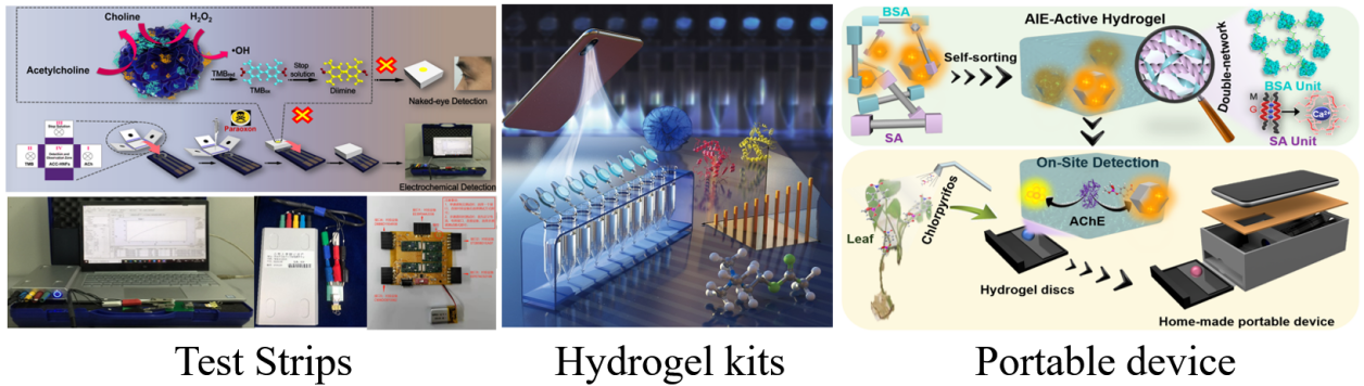 We proposed a composite assembly or surface modification strategy to improve target recognition and amplify the output signal, and constructed a new kind of highly sensitive enzyme-based fluorescence sensor to solve the problem of low detection sensitivity of biosensors. Furthermore, we used printed electronics and 3D printing technology to integrate paper-based chips and test kits, and build portable devices to realize on-site monitoring of biomarkers.