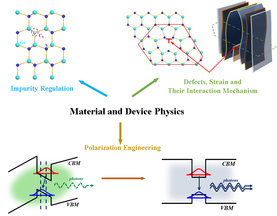 Study the defects, strain and their interaction mechanisms of nitride semiconductor materials. Investigate the impurity regulation mechanism of nitride semiconductor materials. Study the carrier transport, reliability and failure mechanism of nitride semiconductor devices. Develop the band engineering and polarization engineering of nitride semiconductor.